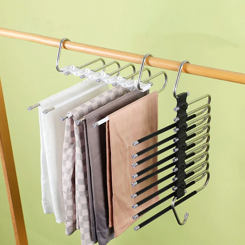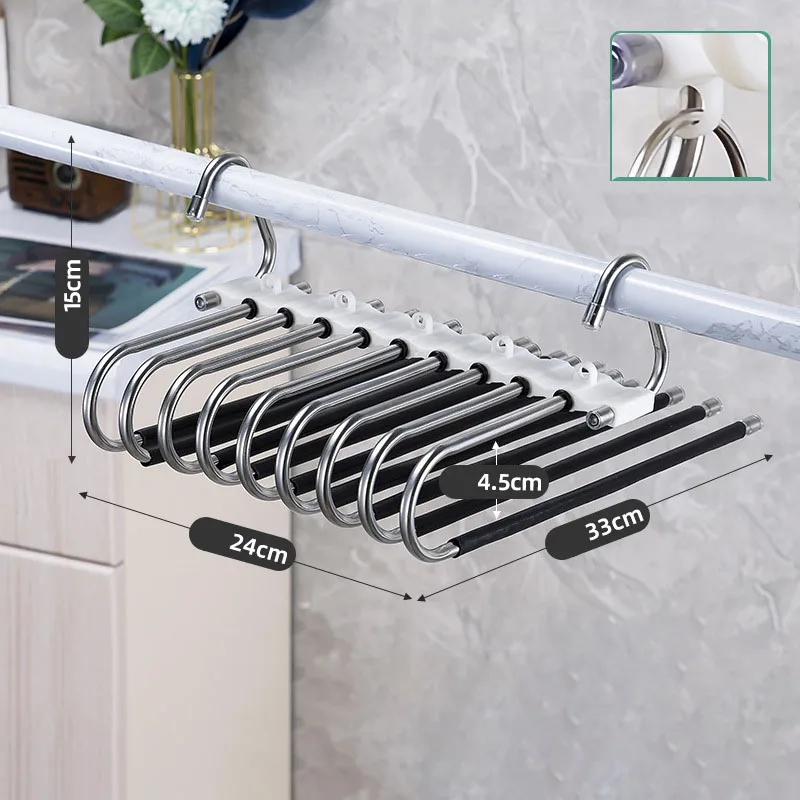מתלה אחסון מתכוונן מרובה שימושים למכנסיים, עניבות ובגדים